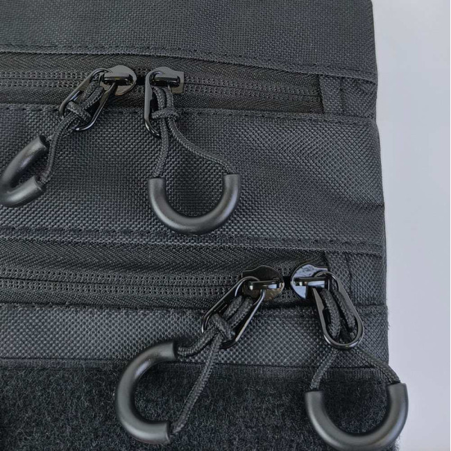 - Два бігунки з тактичними пулерами: Основні відділення мають два бігунки з тактичними пулерами, що підвищує зручність і надійність використання.