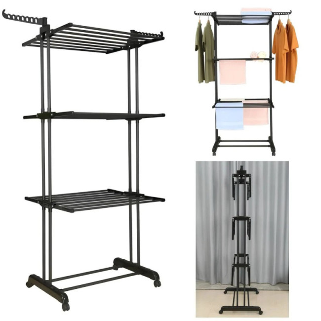 - Практична користь – забезпечує ефективне сушіння різного типу одягу, взуття та білизни, завдяки трьом рівням і додатковим планкам-крилам для вішалок.