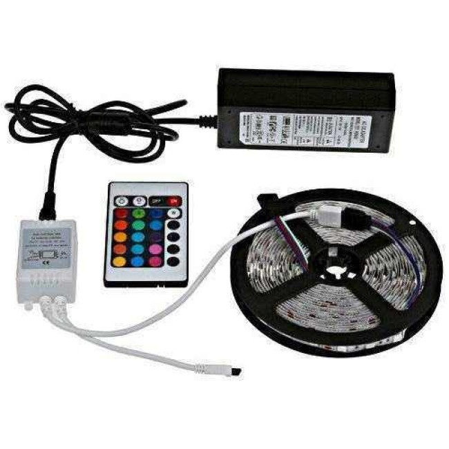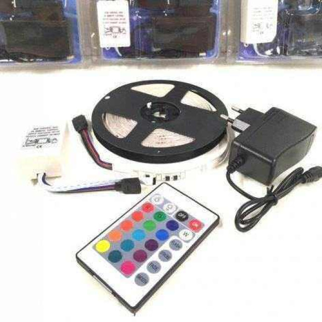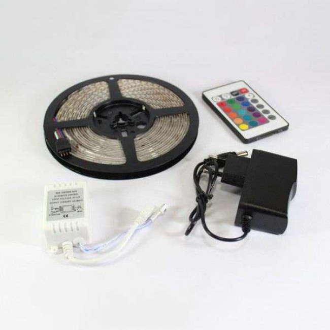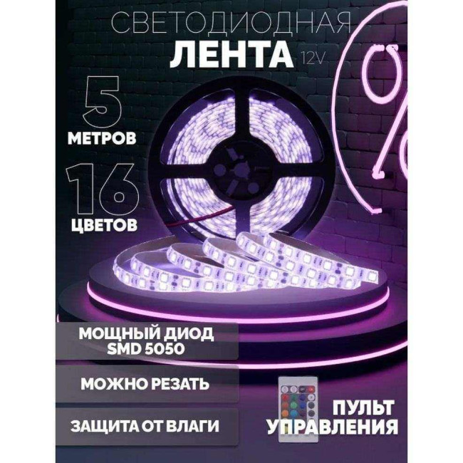 Світлодіодна стрічка SMD 5050 RGB LED 5 м IP65 з пультом та блоком живлення 220v, 5м, Стрічка світлодіодна 5050