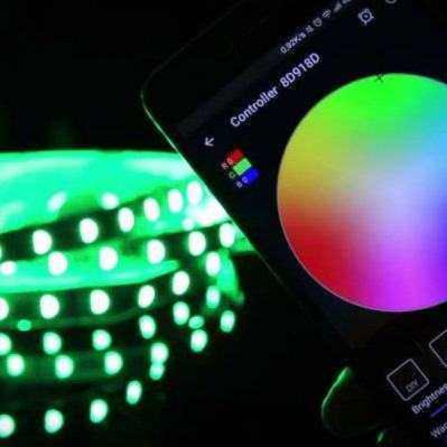 Гнучка світлодіодна стрічка – це модуль освітлення, який складається з гнучкої основи, нанесених на неї струмопровідних доріжок, резисторів і світлодіодів, а також керуючих елементів. Ширина стрічки 1 см, товщина близько 2 мм, а довжина в бобіні 5 м. LED стрічка відмінно підійде для підсвічування, оскільки має високий рівень яскравості і великий кут світіння дорівнює 120°. На стрічці розташовані діоди трьох кольорів зелений, синій, червоний.