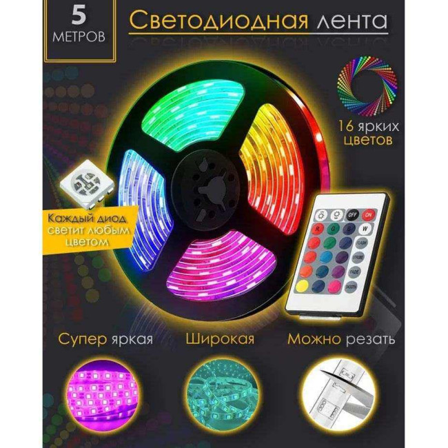- Кількість світлодіодів: 300 шт на 5 м. (60 шт на метрі);