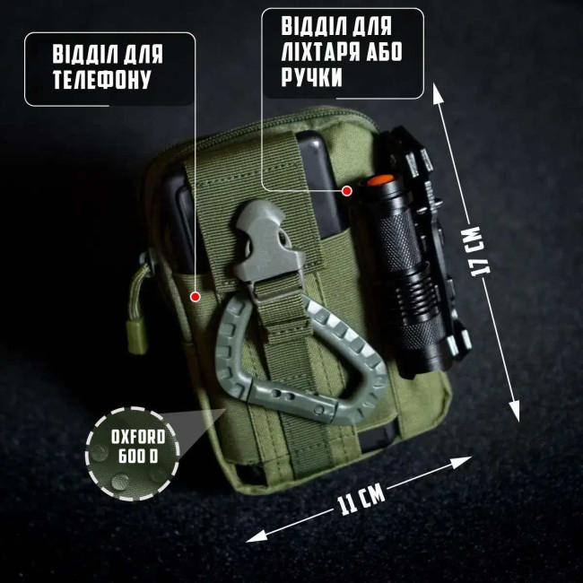 Тактична сумка - сумка для телефону, система MOLLE органайзер тактичний з кордури. Колір: хакі