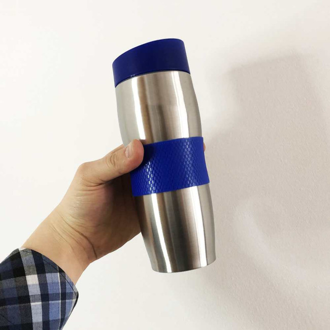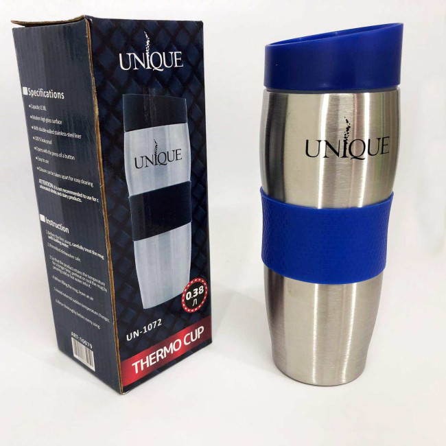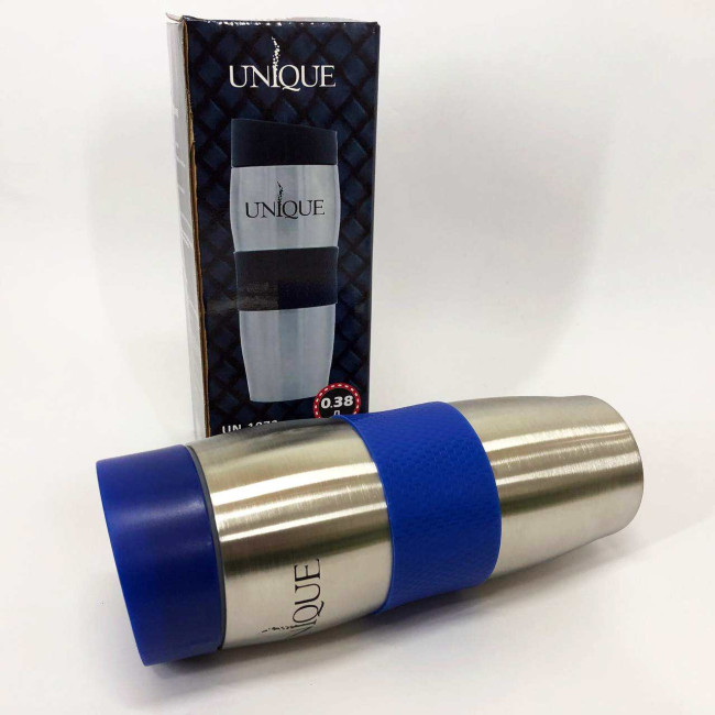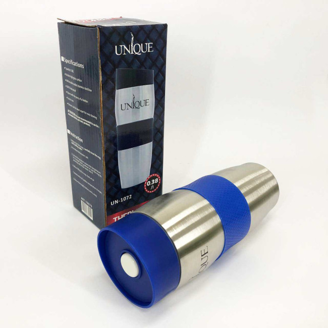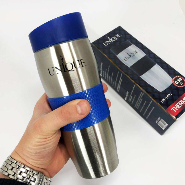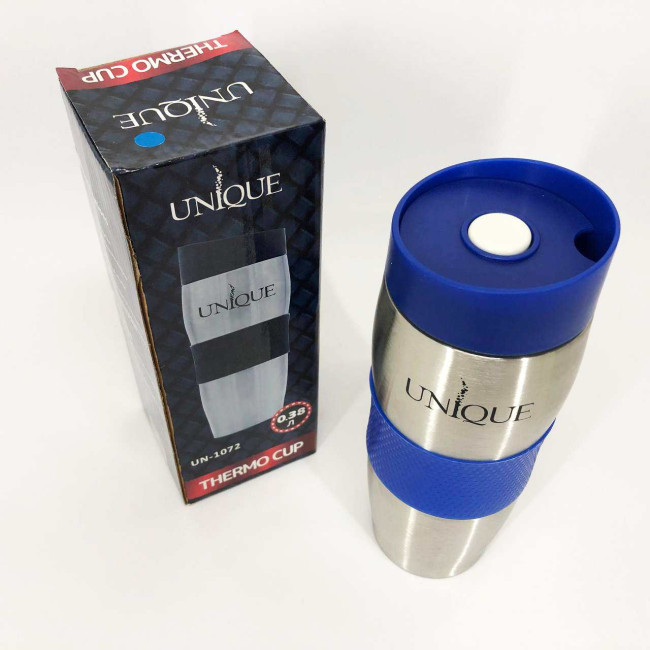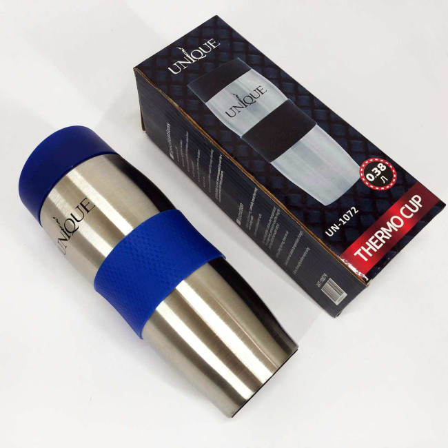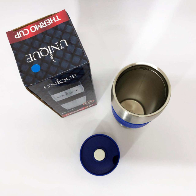 Термокружка 0,38 л із нержавіючої сталі з синьою кришкою і нековзною вставкою