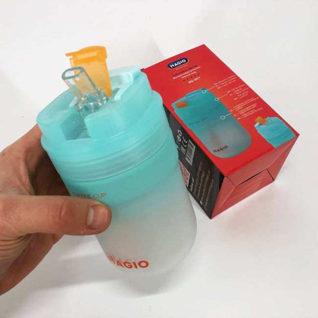 - Компактні розміри 8x8x14 см, що дозволяють зберігати стакан у більшості сумок, рюкзаків і автомобільних підстаканниках.