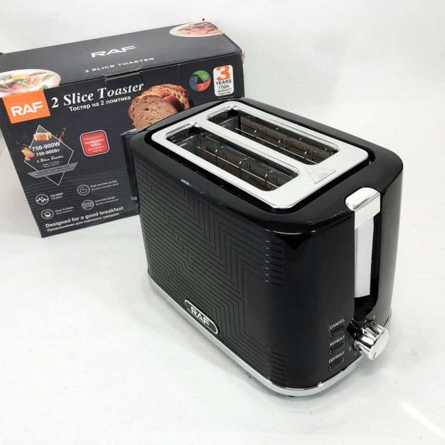 Тостер RAF R.2102, 900 Вт, 2 широкі слоти, функція розморожування та підігріву