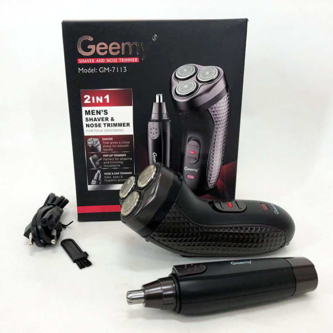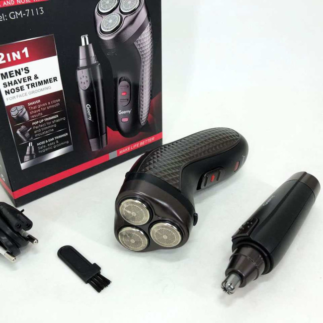 Тример для стрижки бороди триммер для носа, електробритва 3 в 1 GEMEI GM-7113, Тример бездротовий
