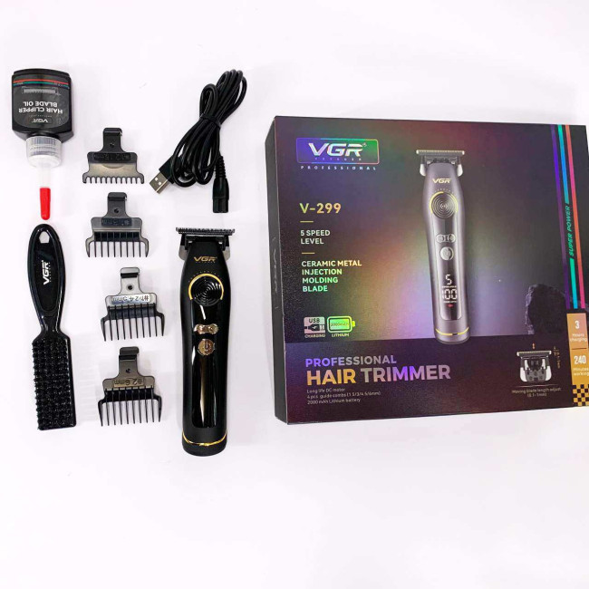 Модель комплектується 4 насадками та підтримує 5 рівнів регулювання швидкості, що дозволяє точно налаштовувати роботу тримера під конкретні завдання — від точного окантування до догляду за густою бородою. LED-дисплей відображає рівень заряду, поточну швидкість, а також нагадування про необхідність обслуговування, забезпечуючи контроль та зручність у процесі експлуатації. VGR V-299 BLACK — це поєднання потужності, точності та функціональності в одному стильному та практичному пристрої.