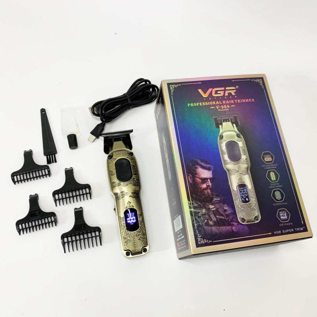 Модель VGR V-954 оснащена потужним роторним двигуном з високою частотою роботи і невеликим рівнем шуму. Мотор працює на частоті 7000 оборотів в хвилину, що забезпечує максимально чисту стрижку навіть найгустішого і товстого волосся. На корпусі розміщено спеціальний LED дисплей, на якому відображається розрахунковий час роботи від акумулятора, а також додаткова індикація необхідності мастила/очищення ножового блоку.