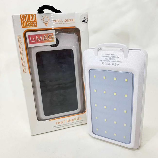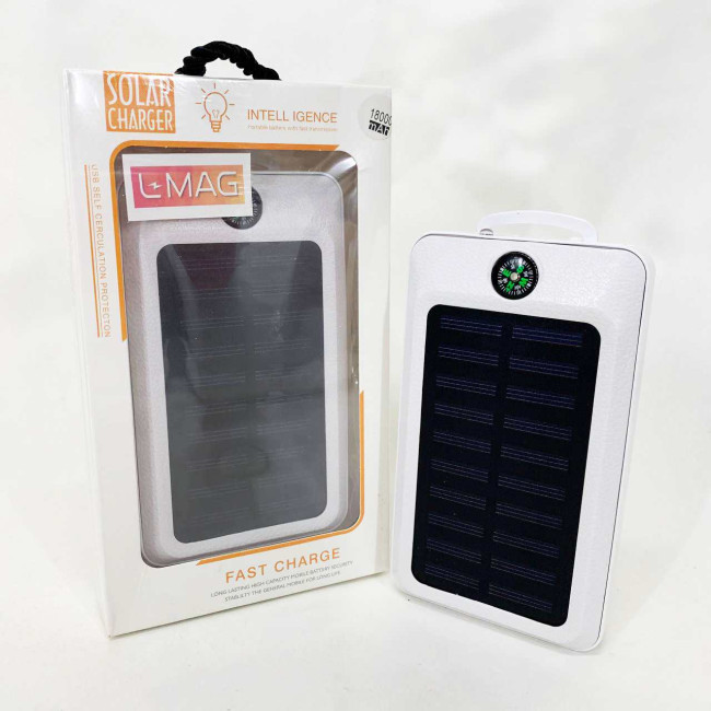 УМБ Power Bank Solar 18000 mAh мобільне зарядне з сонячною панеллю та лампою, Power Bank Charger White