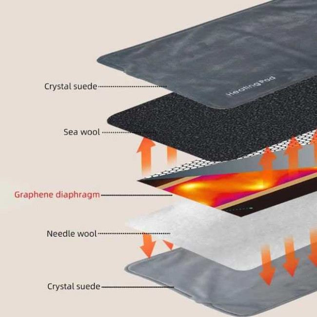 - Для теплопровідності використовується найновіший графеновий матеріал з високою швидкістю нагрівання та рівномірним розподілом температури. Порт Type-C зручний для подачі живлення та простий у використанні.Всередині пристрою немає акумулятора.