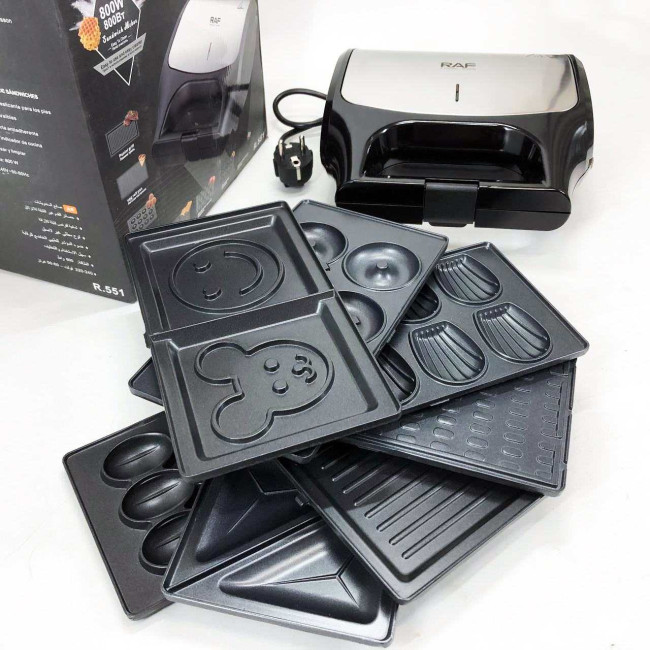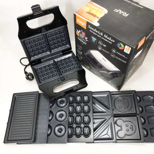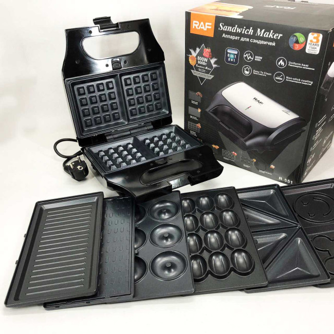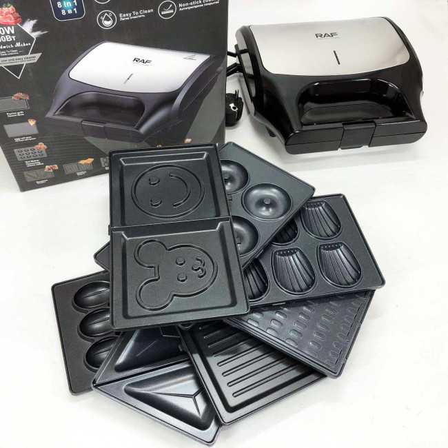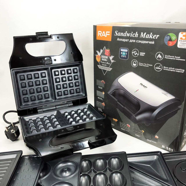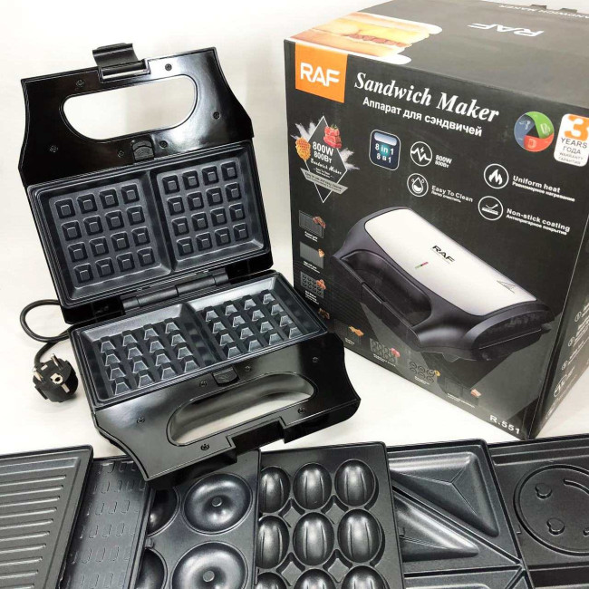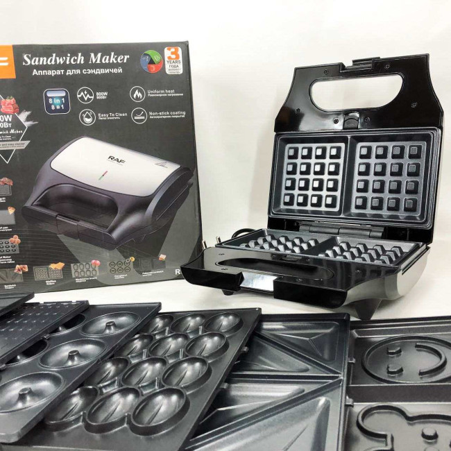 Вафельниця бутербродниця гриль сендвічниця електрична 8 в 1 RAF R.551 850W Мультипекар з 8 формами