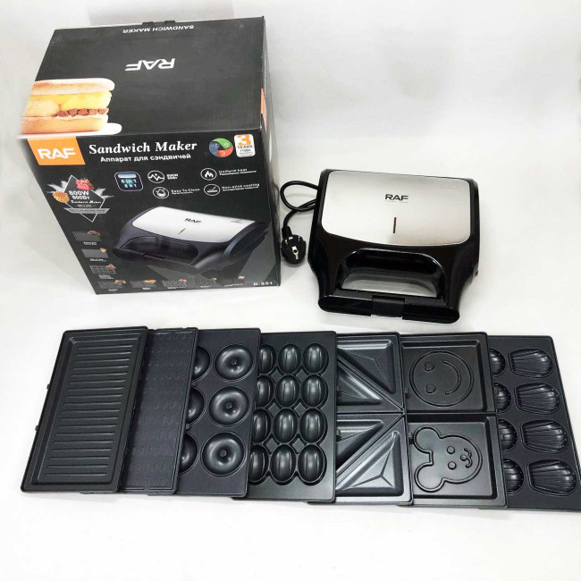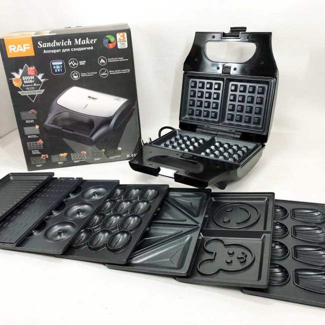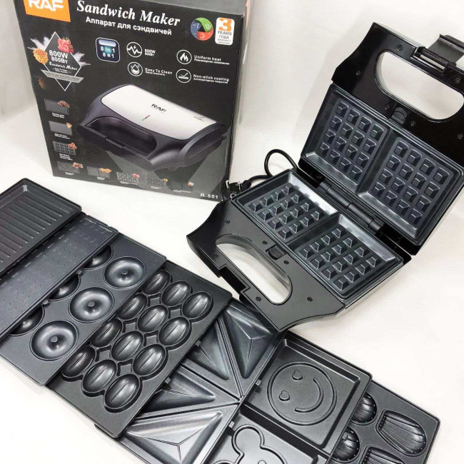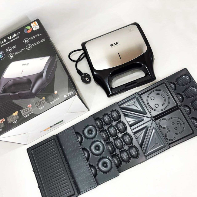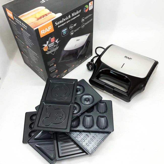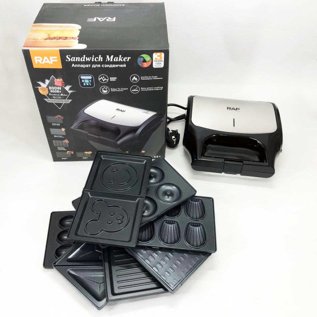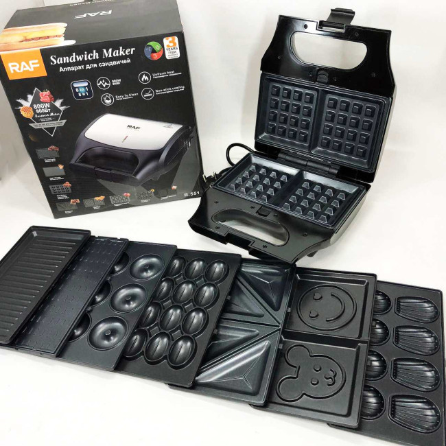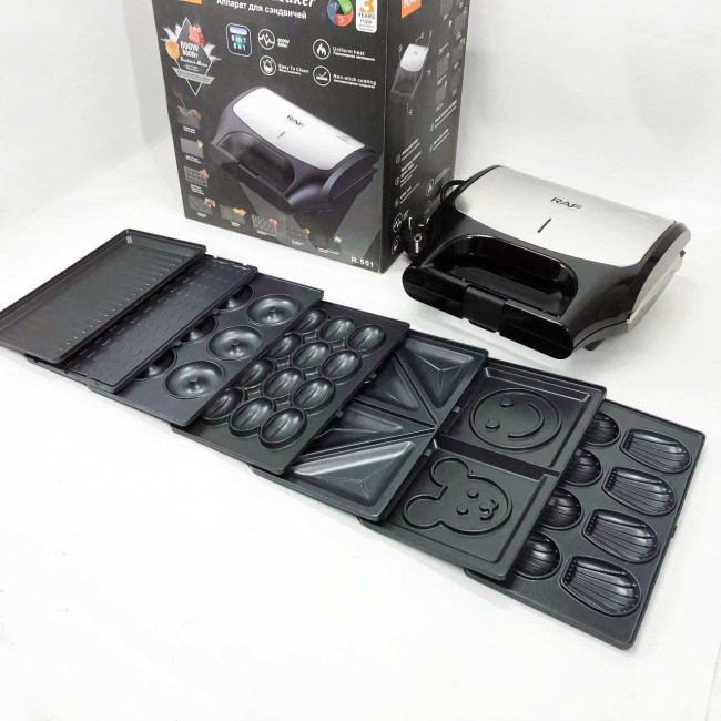 Вафельниця бутербродниця гриль сендвічниця електрична 8 в 1 RAF R.551 850W Мультипекар з 8 формами