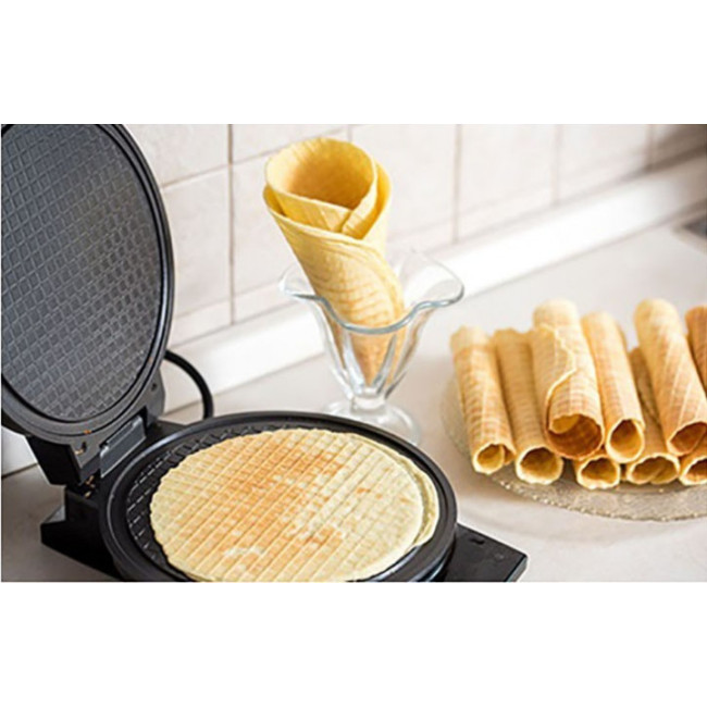 - Призначена для створення круглих і хрустких вафель, які можна загорнути у довгі трубочки, наповнивши їх фруктовою або кремовою начинкою