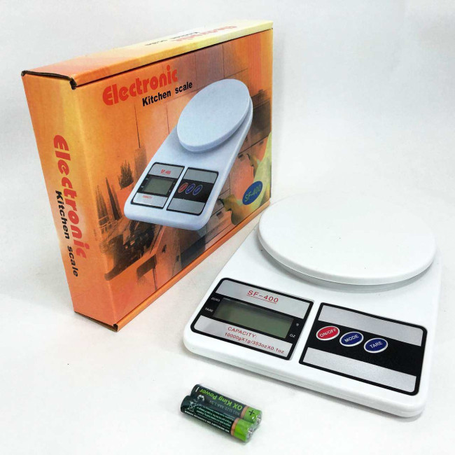 Ваги кухонні електронні Domotec SF-400 з LCD дисплеєм Білі до 10 кг