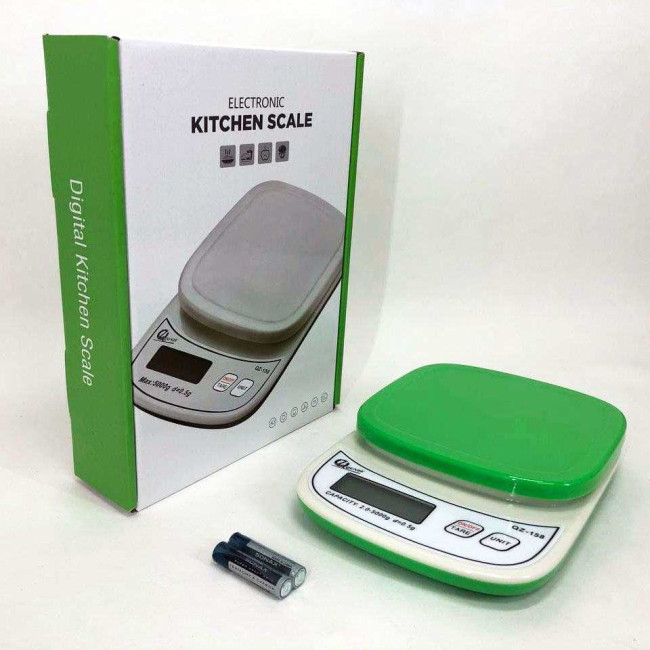 Терези QZ-158A виготовлені з міцного пластику, мають компактні розміри, що дозволяє зручно зберігати їх на кухні. Часто в комплекті йде знімна мірна чаша, зручна для зважування сипких та рідких продуктів. Оснащені РК-дисплеєм з підсвічуванням, що забезпечує хорошу видимість показань навіть за недостатнього освітлення. Запитується від батарейок типу ААА.