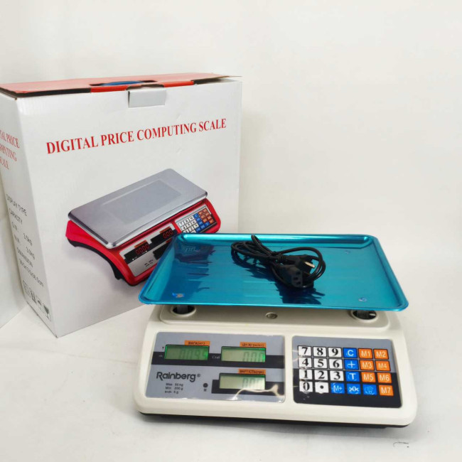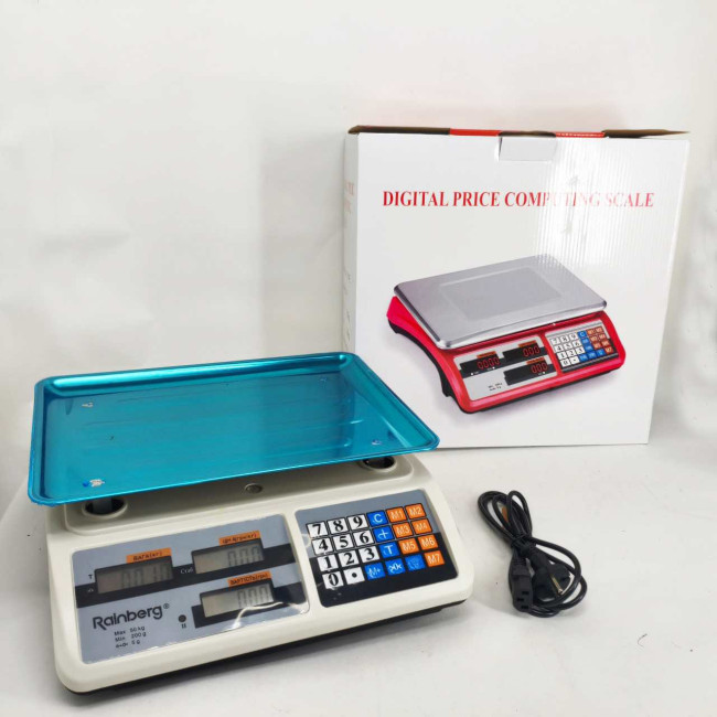 Ваги торговельні електронні акумуляторні Rainberg RB-311 до 55 кг з лічильником ціни 2 дисплеї