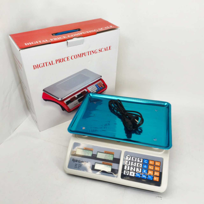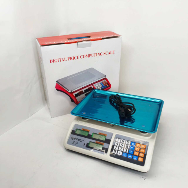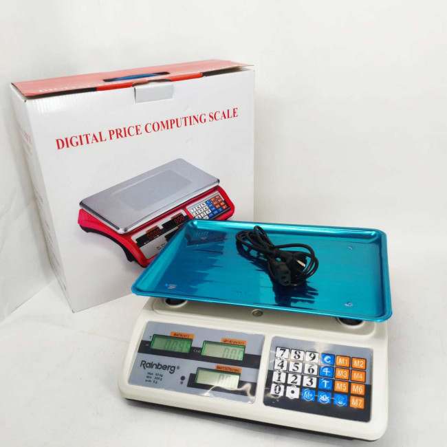Електронні торгові ваги Rainberg RB-311 призначені для торгівлі в магазинах, ринкових точок та ін. Найбільша межа зважування – продукція масою до 55 кг. Для зручного зважування та розрахунку передбачено двосторонній дисплей з підсвічуванням (покупець-продавець), на який виводиться вся інформація про вагу та ціну товару.