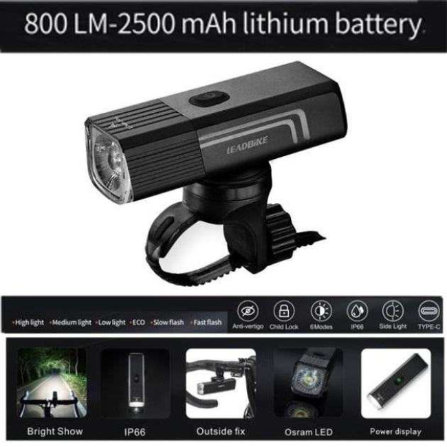 Велофара потужна LEADBIKE LD88-OSRAM 800LM, Довговічний велосипедний ліхтар, Лід фара на велосипед