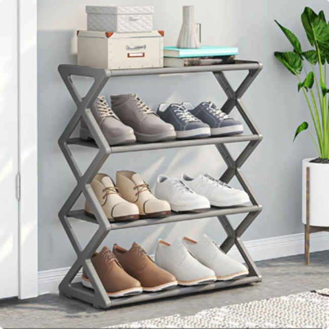 - Чотири рівні зберігання, кожен розрахований на розміщення кількох пар взуття різного типу – від повсякденних кросівок до класичних черевиків.