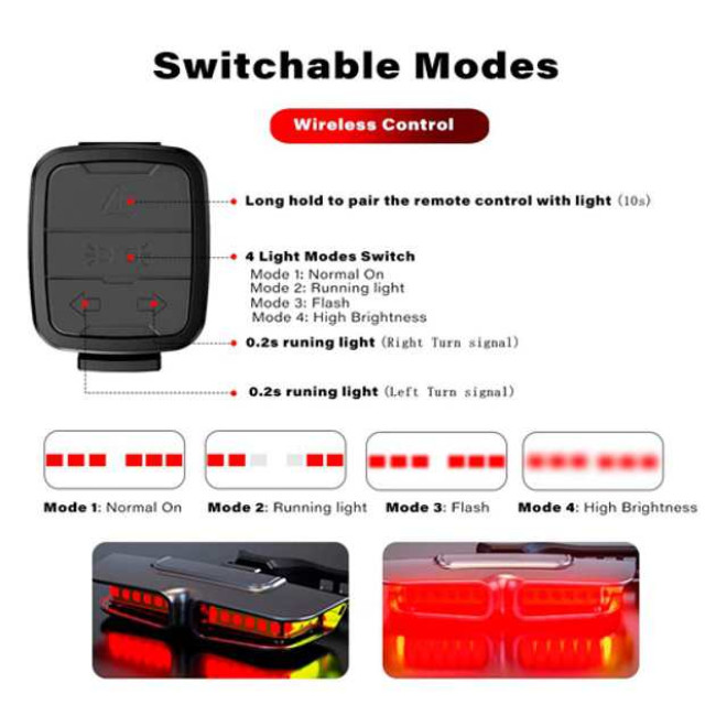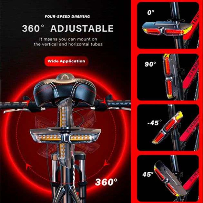 Задній габаритний велоліхтар із поворотами XA-817, дистанційний пульт, Стоп-сигнал на раму велосипеда